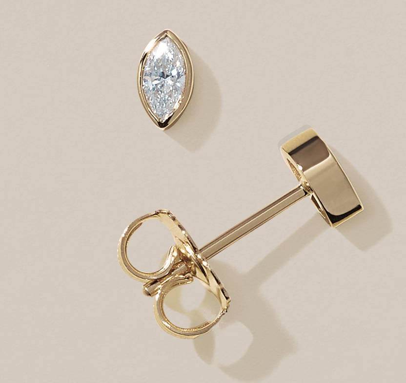 14K Yellow Gold Marquise Diamond Huggie Hoops