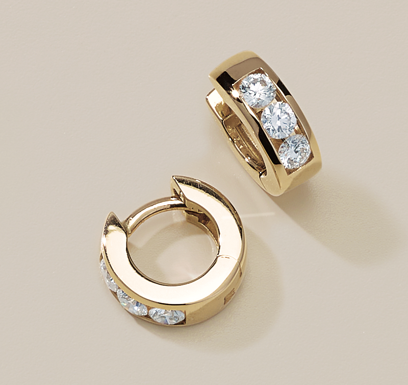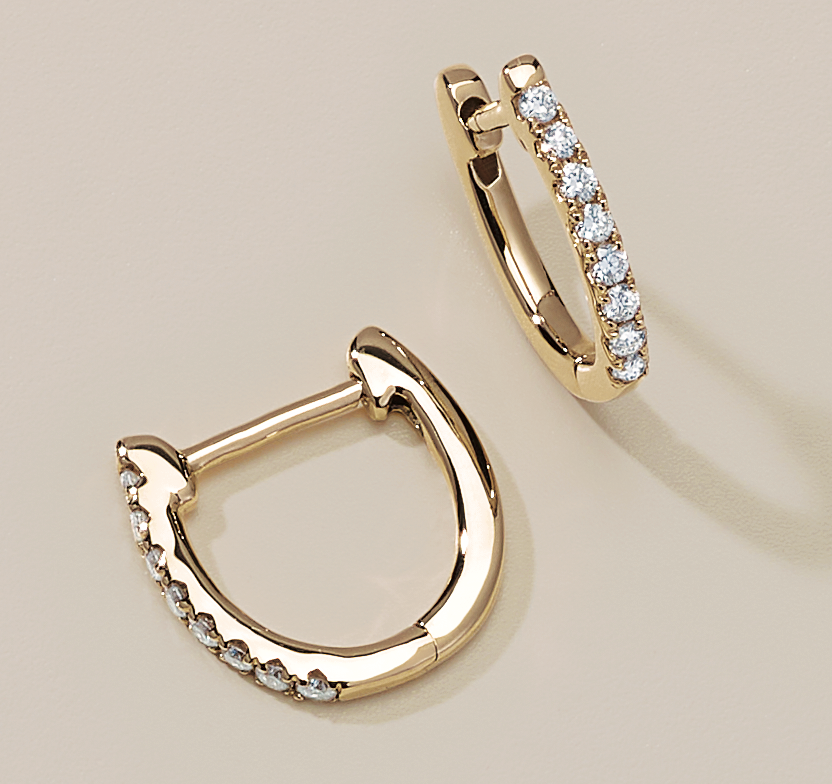 14K Yellow Gold Diamond Hinged hoop Earrings