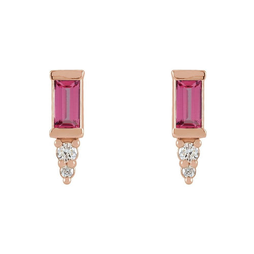 14K Rose Gold Natural Pink Tourmaline & Natural Diamond Earrings