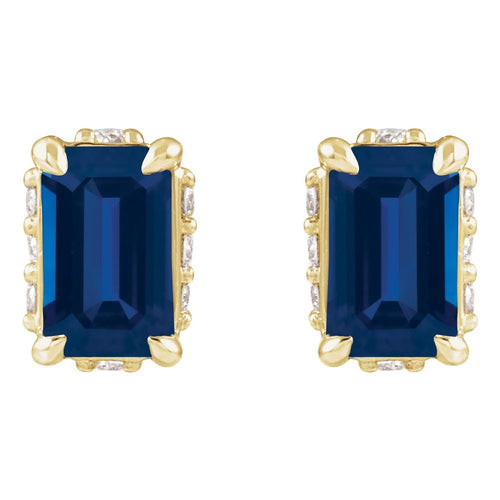 14K Yellow Gold Lab-Grown Blue Sapphire & Diamond Dust Stud Earrings