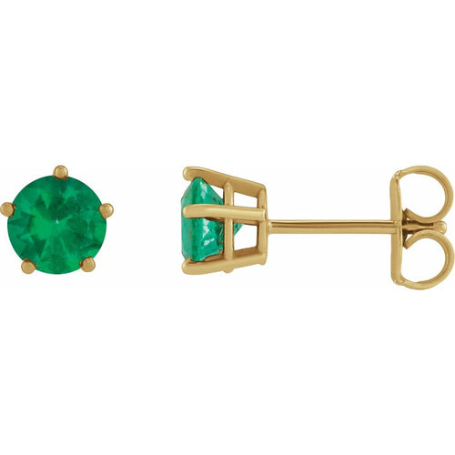 14K Yellow Gold Lab-Grown Emerald Stud Earrings